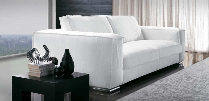 Dalle forme morbide con un aspetto estetico molto attuale ed impreziosito da cuciture in evidenza. Disponibile con basamento in acciaio su tutto il perimetro o con il singolo piede.